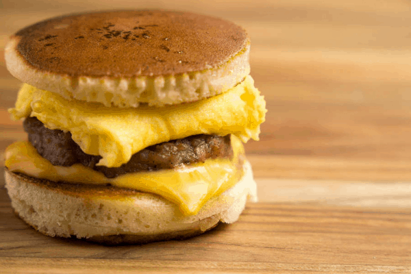I’m sure you think your simple sausage, egg, and cheese is fine, but does it have crunchy maple crystals in it? I'm guessing no. One more question, is yours sandwiched between two pancakes? I didn’t think so. This one is. And it’s about to absolutely change your breakfast. We have McDonald’s McGriddles to thank for the idea, but this recipe goes beyond the scope of what fast-food assembly line churns out.